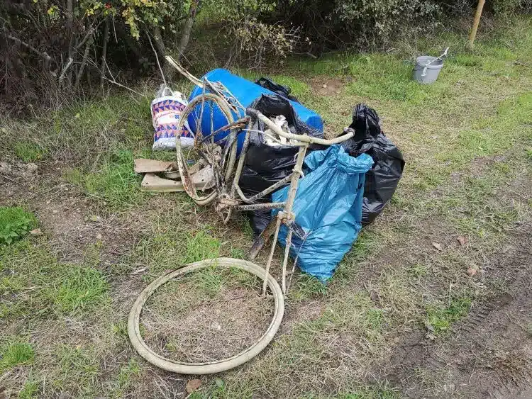 Reste von Grillaktionen, Plastikmüll, ganze Müllbeutel, ein altes Fahrrad und jede Menge Hundekot – das war die traurige Bilanz der Aufräumaktion. “Wir sammeln hier mehrmals im Jahr solchen Mist ein”, klagt Gerd-Heinz Hakvoort über die Achtlosigkeit mancher Menschen. Schon bald soll am Wanderweg ein Spender für Hundekotbeutel installiert werden. Gerd-Heinz Hakvoort hofft, dass die Situation sich dann verbessert.